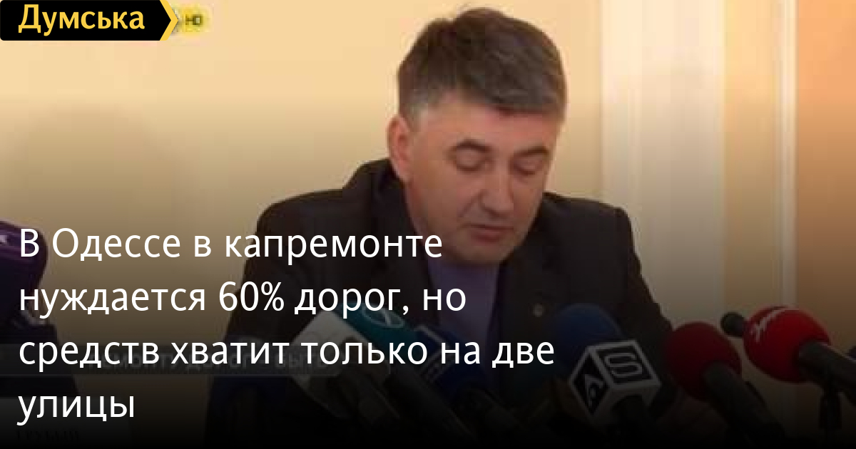 Горсовет выделил 35 млн гривен на ямочный ремонт дорог. Работы начнутся как только позволят погодные условия. Что касается капитального ремонта, на него могут рассчитывать только улицы Генуэзская и Хутораская. При этом, в капитальном ремонте нуждаются более 60% городских дорог.