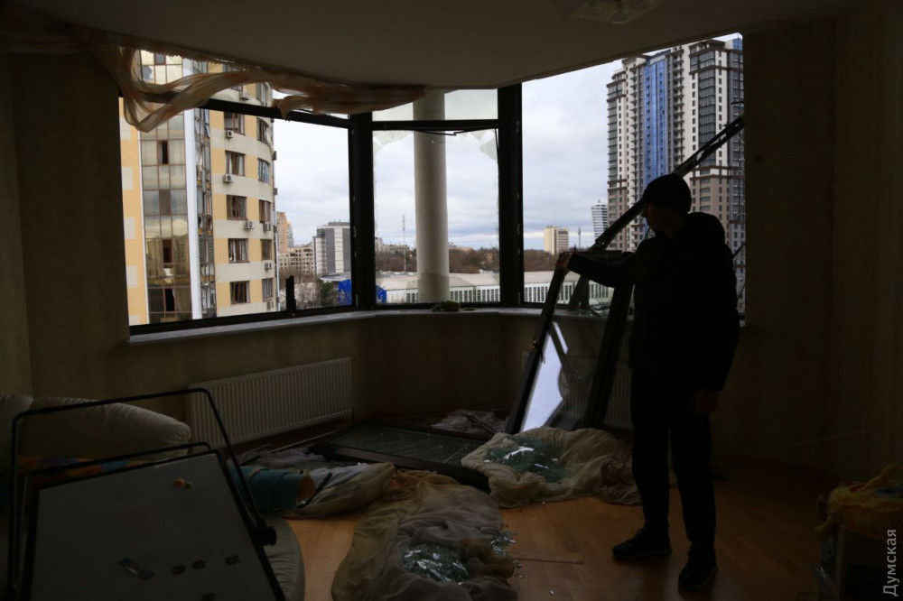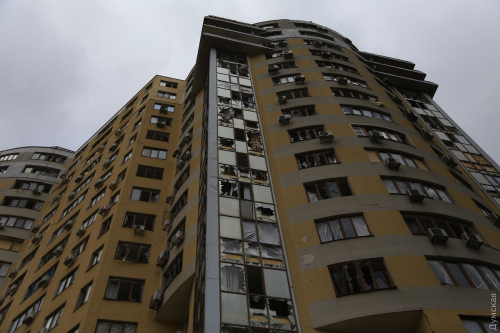 Від 500 до 600 вікон квартир у висотних житлових комплексах позбулися скла внаслідок прильоту двох ракет по Одесі 25 березня.