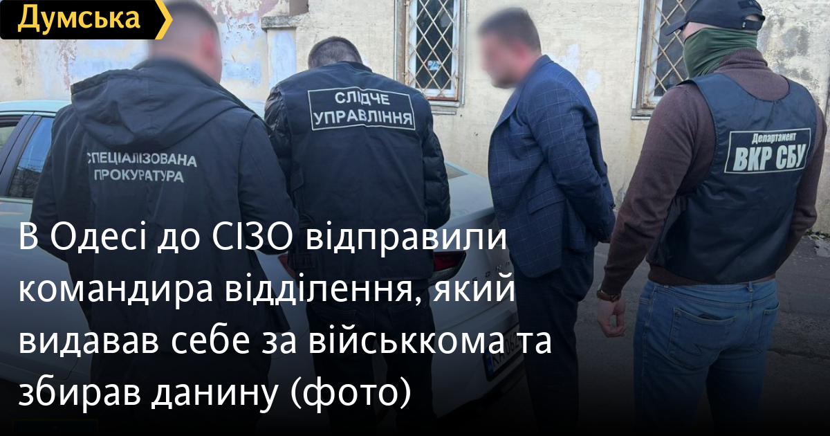 В Одесі до СІЗО відправили командира відділення, який видавав себе за військкома та збирав данинуКомандира відділення однієї з військових частин ЗС України спіймали на гарячому — під час отримання хабара у 2 500 доларів. Чоловік, який видавав себе за посадовця районного центру комплектування та соцпідтримки (простіше кажучи за воєнкома), обіцяв допомогти військовозобов'язаному з документами для перетину кордону, повідомили в Одеській спеціалізованій прокуратурі у сфері оборони Південного регіону. Затримали псевдовійськкома 2 травня на гарячому — після отримання грошей та передачі документів. Йому вже повідомили про підозру й обрали запобіжний захід у вигляді тримання під вартою з можливістю внесення 268 400 гривень застави. Крім того, перевіряється причетність інших осіб до вчинення злочину. СМЕРТЬ РОСІЙСЬКИМ ОКУПАНТАМ! Помітили помилку? Виділяйте слова з помилкою та натискайте control-enter Новини по цій темі: 15 липня 2025: Вимагала 400 євро за підробку документів для пенсії: в Одеській області чиновниця попалася на хабарі (фото, відео) 27 червня 2025: За 40 тис. грн хотів купити секретні розробки: в Одесі затримали співробітника приватної фірми 6 червня 2025: Вимагав три тисячі доларів за довідку про інвалідність: в Одесі затримали головлікаря лікарні (фото) 8 травня 2025: Обіцяли оформити програмістом в комунальне підприємство: в Одеській області викрили схему ухилення від армії |