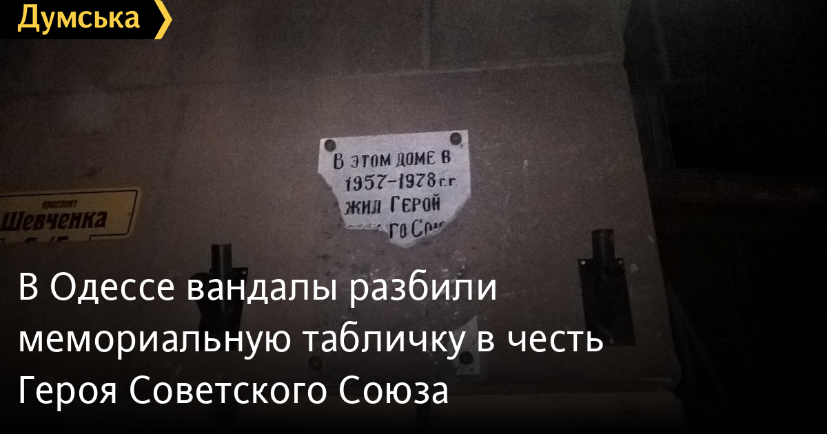 В Одессе вандалы разбили мемориальную табличку в честь Героя Советского Союза