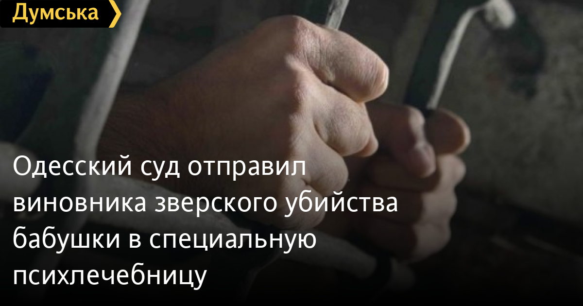 25-летнего одессита, который зверски убил собственную 70-летнюю бабушку, расчленил ее, а затем, пытаясь избавиться от тела, поджег квартиру, отправили на принудительное лечение в Украинскую психиатрическую больницу со строгим надзором (Днепропетровск).