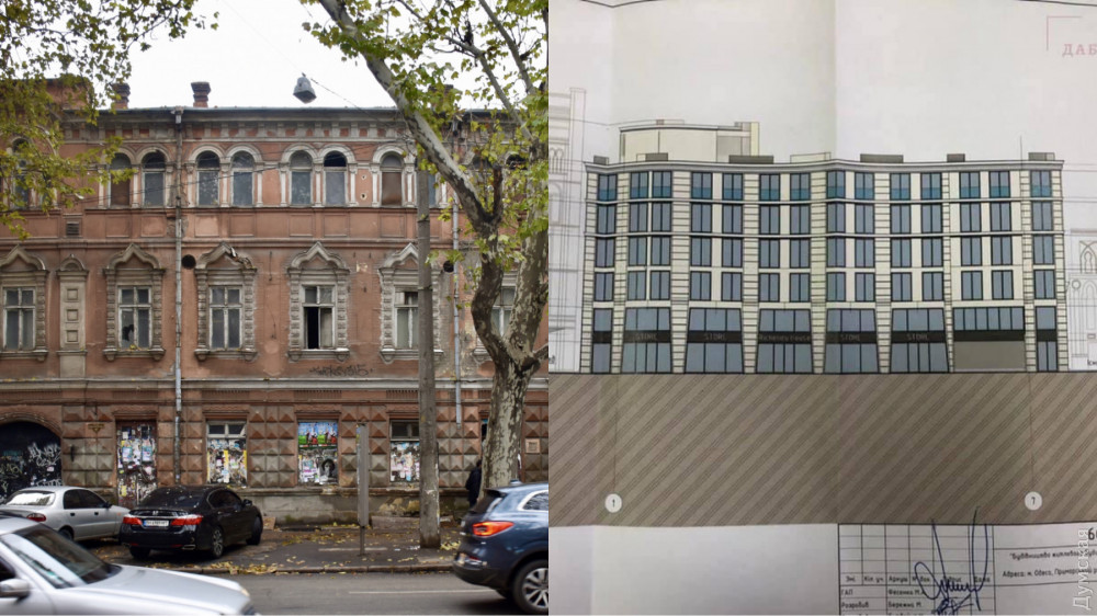 Сейчас по указанному адресу находится неиспользуемое старинное здание, которое еще недавно было памятником архитектуры. Трехэтажный дом построили в 1841 году, а в 1891 реконструировали под типографию Ефима Фесенко. На сегодняшний день объект утратил охранный статус, как и расположенный по соседству Ришельевский театр (кинотеатр имени Короленко). Рядом с будущей стройкой находится еще один памятник архитектуры — дом Нолле 1901 года постройки.