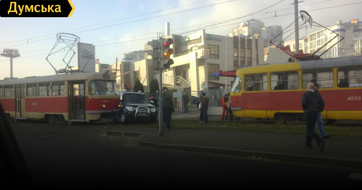 Как сообщают очевидцы, водитель внедорожника «Митсубиси Паджеро» попытался проскочить перед движущимся трамваем возле магазина «Таврия Вузовский», в результате чего произошло столкновение.
