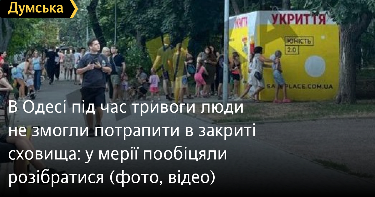 В Одесі під час тривоги люди не змогли потрапити в закриті сховища: у мерії пообіцяли розібратися (фото, відео)Два укриття виявилися зачиненими вдень 11 серпня під час повітряної тривоги. Одне — у парку Перемоги, друге — на пляжі «Дельфін». Відео та фото з укриттями, в які неможливо потрапити, поширилися в соцмережах і викликали бурю обурення серед містян. На те, що сталося, відреагувала віцемер Ганна Позднякова, яка пообіцяла розібратися в ситуації. «Повністю поділяю обурення анонімних авторів — це неприпустимо. У ситуації розберемося. Такого бути не повинно. При цьому, в цих же телеграм-каналах поширюється інформація про те, що укриття належать КП «Сервісний центр». Інформація дійсності не відповідає. Тим не менш. Випадок вимагає реакції від місцевої влади і вона буде», — запевнила заступниця мера. Помітили помилку? Виділяйте слова з помилкою та натискайте control-enter