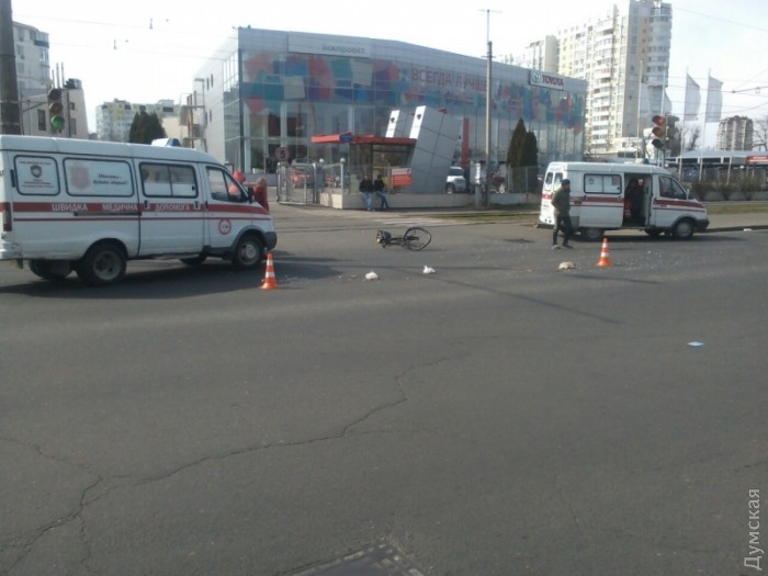 Сегодня днем в районе 5-ой станции Люстдорфской дороги сбили двух велосипедистов. По информации пресс-службы патрульной полиции Одессы, 31-летний водитель автомобиля «ВАЗ-2101» выехал на красный свет светофора и совершил наезд на двух велосипедистов, переезжавших дорогу по пешеходному переходу, а те в свою очередь столкнулись с автомобилем «Митсубиси Лансер», который двигался на зеленый свет.