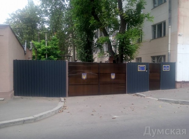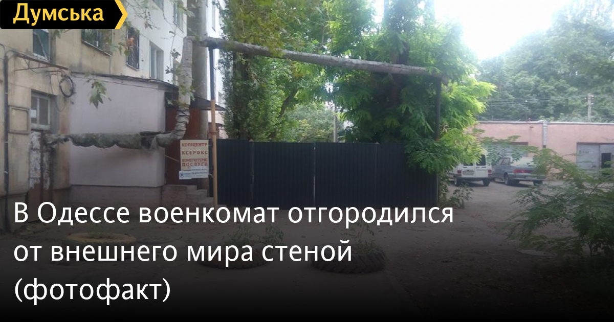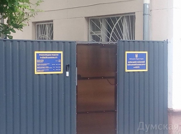 Киевский районный военный комиссариат Одессы, который делит здание №15а на улице Академика Филатова с райотделом милицией и подразделением Госмиграционной службы Украины, отгородился от внешнего мира стеной из профнастила.