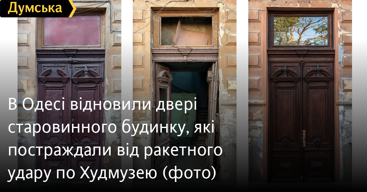 В Одесі відновили двері старовинного будинку, які постраждали від ракетного удару по ХудмузеюРеставрацію історичних дверей у будинку-пам'ятці на Софіївській вулиці, 8, що постраждав від прильоту разом із Худмузеєм, завершили в Одесі. Як розповів «Думській» керівник проєкту «Тисячі дверей Одеси», урбаніст Олександр Левицький, роботи тривали дев'ять місяців. Будівля-пам'ятка архітектури місцевого значення, зведена наприкінці XIX століття видатним архітектором Демосфеном Мазіровим, серйозно постраждала в результаті ракетної атаки 6 листопада 2023 року. Вибухова хвиля зірвала двері з петель, порушила конструкцію дверної коробки, пошкодила декоративні елементи, а фільонки виявилися буквально зрешечені осколками. «Ці двері унікальні, — говорить Левицький. — По-перше, це одні з найбільших дверей, із чотирма стулками. По-друге, у будинку збереглися другі тамбурні двері — для Одеси це рідкість. Зазвичай їх мешканці ще за радянських часів знищували заради опалення. Але найскладніше було відновити маскарони — ми майже повністю відтворили їх за канонами барокової пластики». Об'єкт був відновлений до найдрібніших деталей: відтворено втрачені декоративні елементи, виправлено геометрію, а планку притвору доповнено відсутніми фрагментами. Тепер вхідні й тамбурні двері працюють синхронно завдяки доводчикам, зберігаючи стабільний клімат у парадній. «Двері Караводіна на вулиці Софіївській, 8 могли зникнути назавжди, але вони повернулися, — упевнений Олександр Левицький. — Не тому, що так вийшло, а тому, що ми не дали їм зникнути».