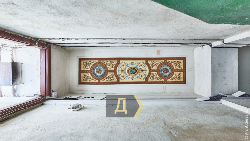 Старинную потолочную роспись восстановили в вестибюле доходного дома Балашева, расположенного по адресу Лютеранский переулок, 3.