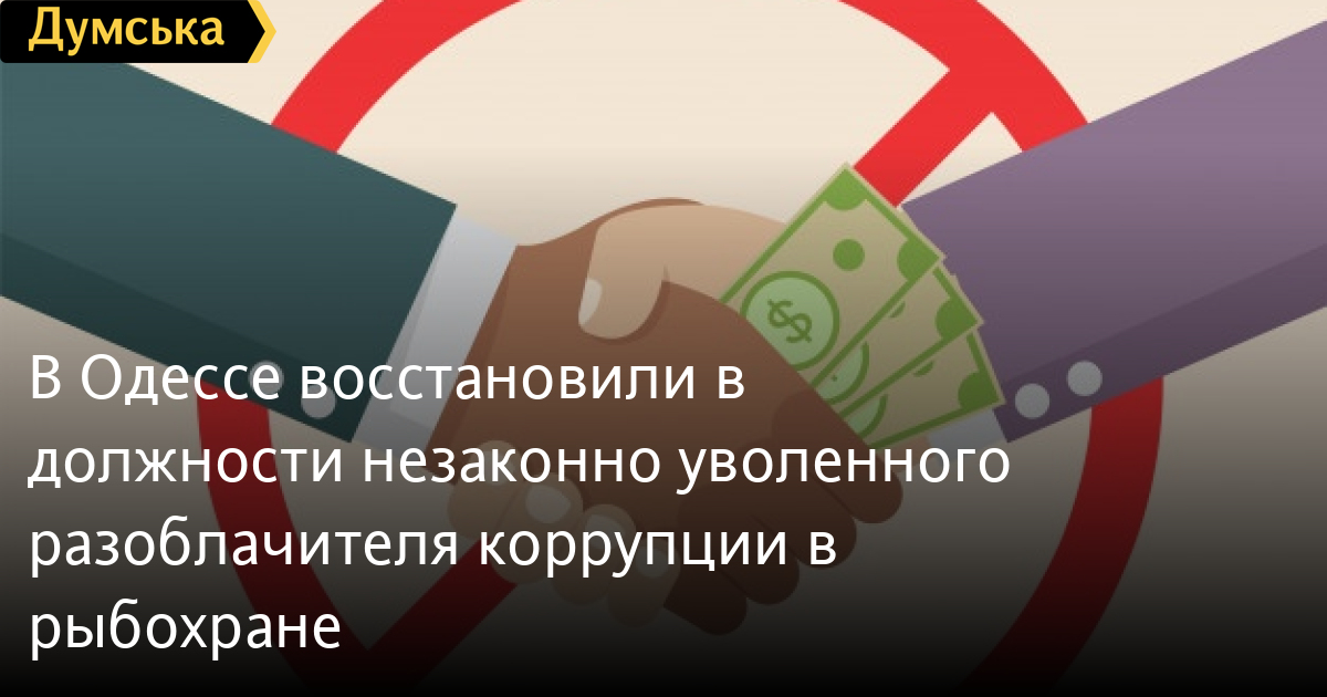 В Одессе восстановили в должности незаконно уволенного разоблачителя коррупции в рыбохранеОдесский окружной админсуд постановил восстановить в должности сотрудника Западно-Черноморского бассейнового управления рыбохраны, которого незаконно уволили за разоблачение коррупции в ведомстве. Об этом сообщили в Нацагентстве по вопросам предотвращения коррупции, которое выступало третьей стороной в этом процессе. По решению суда, приказ об увольнении антикоррупционера отменили, кроме того, восстановленному в должности чиновнику выплатят зарплату за то рабочее время, которое он вынужденно пропустил. Также управление рыбохраны должно выплатить сотруднику материальный ущерб. СМЕРТЬ РОССИЙСКИМ ОККУПАНТАМ! Заметили ошибку? Выделяйте слова с ошибкой и нажимайте control-enter |