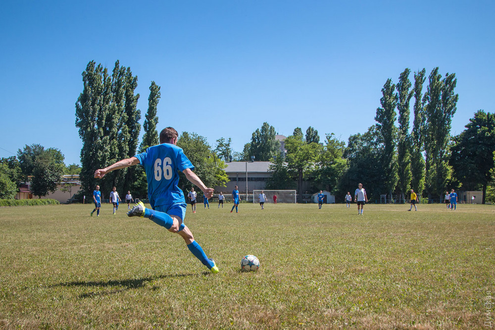 На самом старом футбольном поле Одессы – шутка сказать, стадиону университета 153 года! – сразились пять студенческих команд: «Национальный университет», «Строительная академия», «Политех», «Педин» и «Вышка».