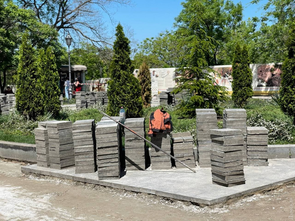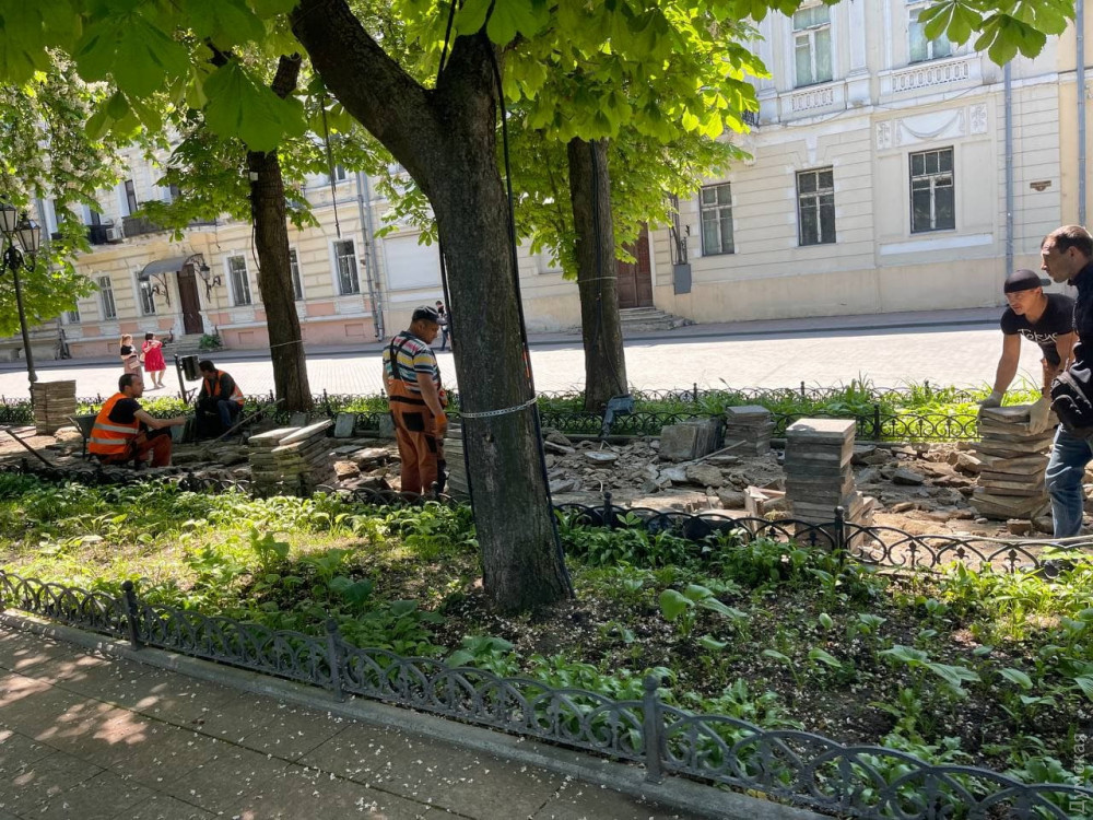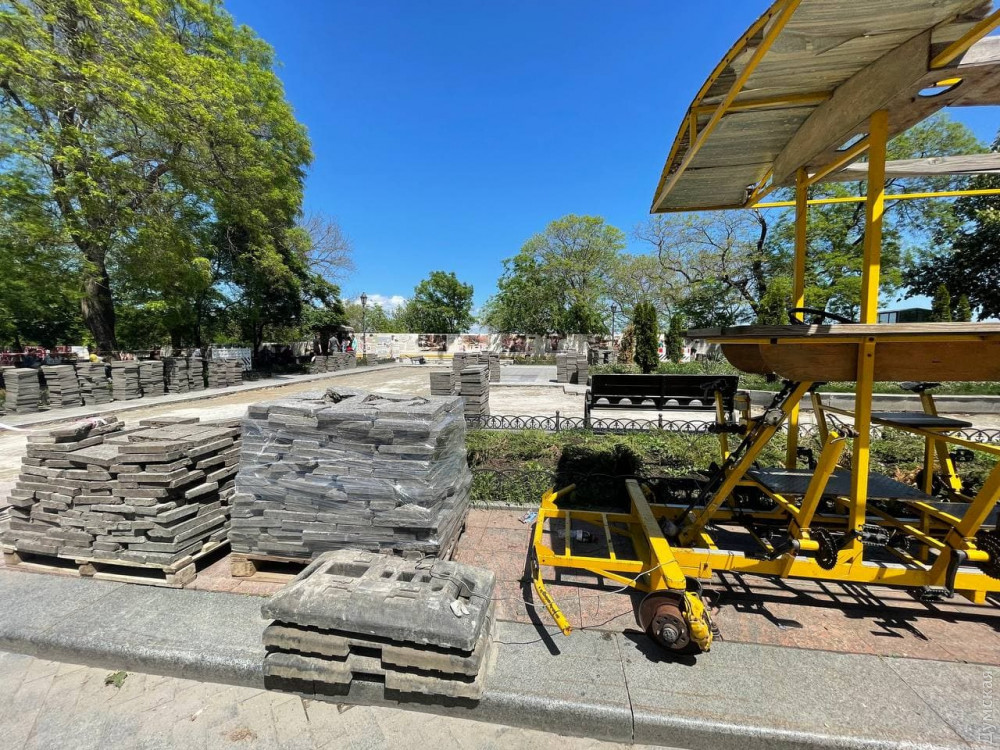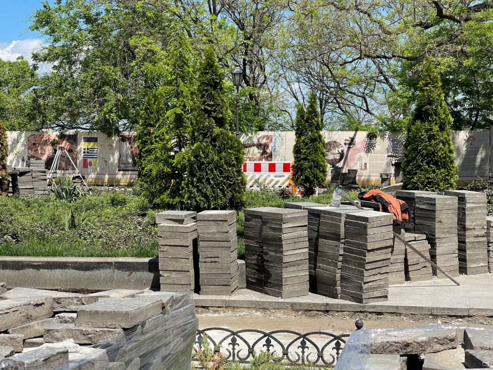 Капитальный ремонт Приморского бульвара развернули в Одессе, уже активно чинят пешеходную зону, в частности, в районе Воронцовской колоннады.