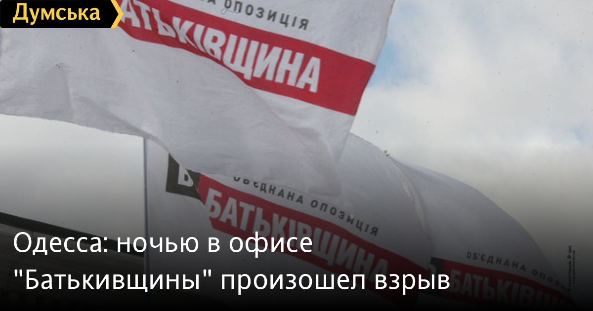 Минувшей ночью неизвестные подорвали офис партии «Батькивщина» в Малиновском районе Одессы.