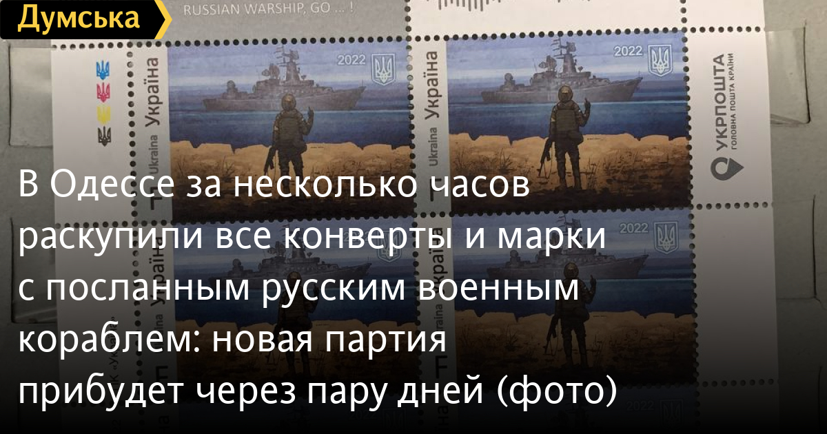 15 апреля, в первый день продажи почтовых марок «Русский военный корабль, иди на***» и конвертов «Первый день», которые недавно выпустила «Укрпошта», одесситы смели всю поступившую в город партию.