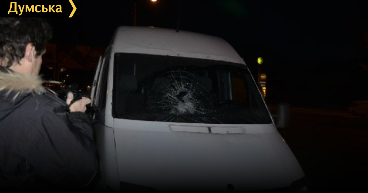 «Еще на Привокзальной площади пассажиры в микроавтобусах заметили, что за ними следуют два легковых автомобиля, — написал он на своей странице в «Фейсбуке». — Машины догнали автобусы на улице Грушевского за автовокзалом, подрезали. Из авто выскочили два молодых человека крепкого телосложения в темных куртках и шапках и стали кидать камни в автобусы. Водители успели затормозить и выскочить, чтобы задержать нападавших, но не успели. У микроавтобусов полностью разбиты лобовые стекла, помяты капоты. Номера на машинах, нападавших на активистов Майдана, были временными (красными): 1. Черная (темно-синяя) иномарка ВН 04 16 АП 2. Бежевая ДЭУ 21 70 НК».