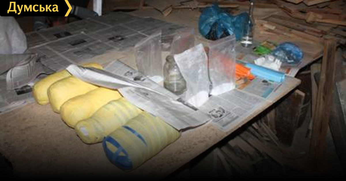 В специально оборудованном подсобном помещении, где диверсанты скрывались и изготавливали взрывные устройства, оперативники обнаружили и изъяли пять пакетов с самодельной взрывной смесью весом 16 кг и комплектующие для детонаторов.