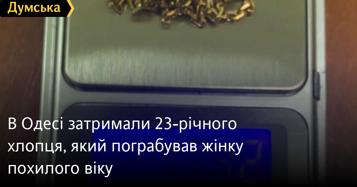 В Одесі затримали 23-річного хлопця, який пограбував жінку похилого віку23-річний молодик пограбував на вулиці Черняховського літню одеситку, але гарячими слідами був затриманий правоохоронцями. Як повідомили у пресслужбі обласної поліції, правопорушник напав на 81-річну одеситку, коли вона разом із чоловіком поверталася додому із магазину. Він повалив жінку на тротуар, зірвав із шиї золотий ланцюжок і втік. Постраждала звернулася до поліції і менш як за годину оперативники затримали правопорушника на Адміральському проспекті. Той зізнався, що хотів продати вкрадене. Злочинця відправили до ізолятора тимчасового тримання. Йому повідомили про підозру за ч.4 ст.186 Кримінального кодексу України. За грабіж, скоєний за умов воєнного стану, йому загрожує від семи до десяти років позбавлення волі. Помітили помилку? Виділяйте слова з помилкою та натискайте control-enter Новини по цій темі: 29 липня 2025: В Усатово Одеської області сталася перестрілка: поліція працює на місці (відео, оновлено) 28 липня 2025: П'яний на "Ягуарі" або гіпертонік? Звільнений топ-посадовець одеської поліції хоче повернутися на службу 19 червня 2025: Дівчинку, яку шукали сотні одеситів, знайшли вбитою: поліція працює з чоловіком, ймовірно причетним до загибелі 27 травня 2025: Увели гектар в університету: на Одещині засудили земельних аферистів, але без посадки і Хвоста |