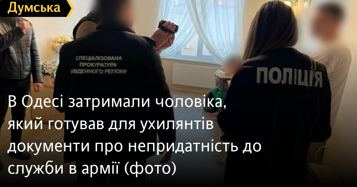 В Одесі затримали чоловіка, який готував для ухилянтів документи про непридатність до служби в арміїПоліція затримала одесита після отримання 8000 доларів за сфабриковану довідку військово-лікарської комісії про непридатність призовника до військової служби. У ГУНП повідомили, що фігурант за допомогою свого знайомого співробітника ТЦК налагодив схему таких довідок для ухилянтів. Особу спільника чоловіка ще встановлюють. Затриманий надсилав довідки клієнтам поштою після повної передоплати «послуги». Його дії кваліфікували за 332-ю статтею Кримінального кодексу України (незаконне переправлення через державний кордон). Помітили помилку? Виділяйте слова з помилкою та натискайте control-enter |