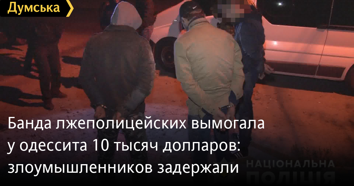 Как сообщили в пресс-службе ГУНП, в состав банды входили жители Одессы и области в возрасте от 24-х до 44-х лет. Четверых злоумышленников задержали во время передачи десяти тысяч долларов США, которые они вымогали у жителя Суворовского района.
