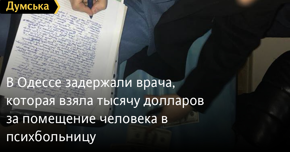 В Одессе задержали врача, которая взяла тысячу долларов за помещение человека в психбольницуСотрудники областной прокуратуры, УСБУ и полиции задержали «на горячем» сотрудницу коммунального предприятия «Одесский областной медицинский центр психического здоровья». Как сообщили в пресс-службе прокуратуры Одесской области, медицинский работник требовала и получила от гражданки 1 тысячу долларов США за помещение в больницу ее отца и дальнейшее оформление документов для проведения экспертизы. Процессуальное руководство в уголовном производстве по ч. 4 ст. 354 УК Украины (подкуп работника предприятия, учреждения, совмещенный с вымогательством) осуществляет прокуратура Одесской области. СМЕРТЬ РОССИЙСКИМ ОККУПАНТАМ! Заметили ошибку? Выделяйте слова с ошибкой и нажимайте control-enter |