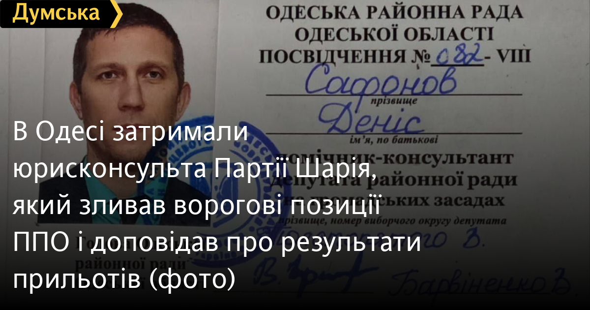 Приватного юриста, який раніше був помічником кількох депутатів від Партії Шарія в одній із райрад Одеської області, затримали правоохоронці за співпрацю з рф.