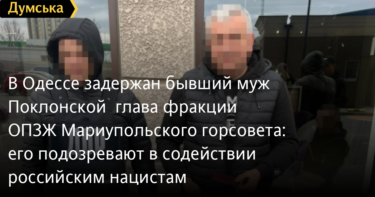 В Одессе задержан бывший муж Поклонской — глава фракции ОПЗЖ Мариупольского горсовета: его подозревают в содействии российским нацистамРуководитель фракции партии ОПЗЖ Мариупольского городского совета Владимир Клименко, который подозревается в сотрудничестве с российскими нацистами, задержан сотрудниками ГБР в Одессе. Как сообщает пресс-служба ведомства, он является бывшим мужем экс-генпрокурора Крыма Натальи Поклонской, предавшей Украину во время аннексии полуострова рф. Сообщается, что этот политик стал рупором кремля на востоке Украины – выступал за восстановление экономических связей с россией. Работал в командах Януковича, Медведчука, Королевской. Сегодня в отношении него в суде рассматривается дело о посягательстве на территориальную целостность Украины. Зафиксировано, что накануне полномасштабного вторжения рф коллаборант на своей официальной странице в Facebook призывал к свержению действующей украинской власти. Сотрудники ГБР нашли Клименко на съемной квартире в Одессе, куда он сбежал из Мариуполя. В настоящее время депутат передан Службе безопасности Украины. СМЕРТЬ РОССИЙСКИМ ОККУПАНТАМ! Заметили ошибку? Выделяйте слова с ошибкой и нажимайте control-enter |