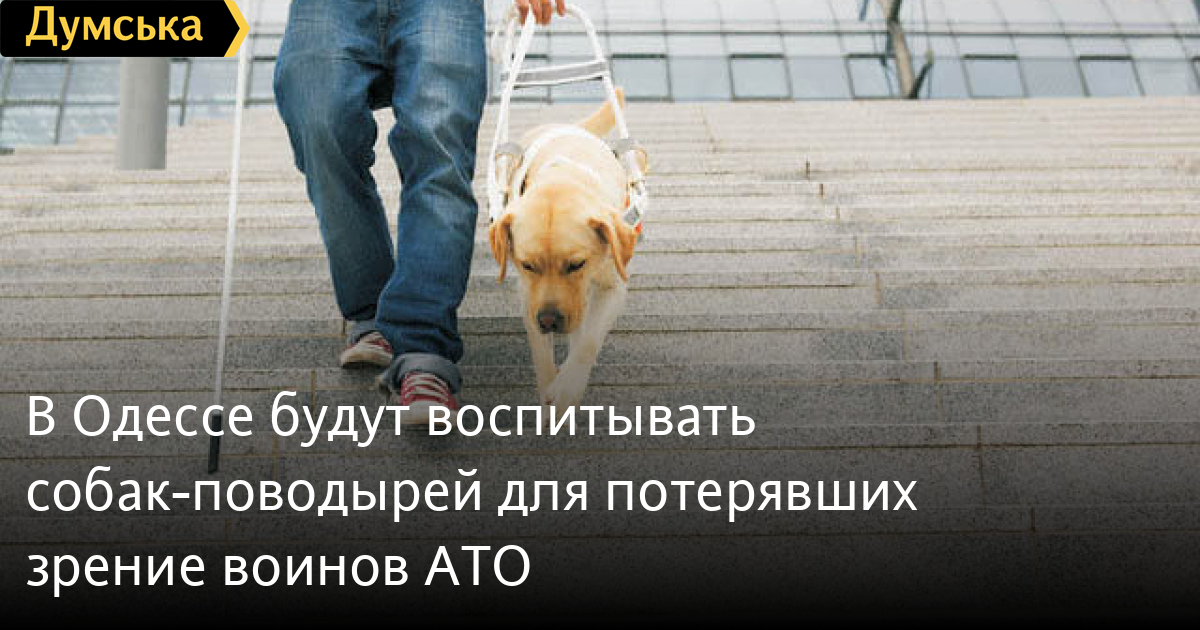 Волонтеры запускают в Одессе проект по воспитанию собак-поводырей для участников антитеррористической операции на востоке Украины и переселенцев, которые потеряли зрение в результате войны.
