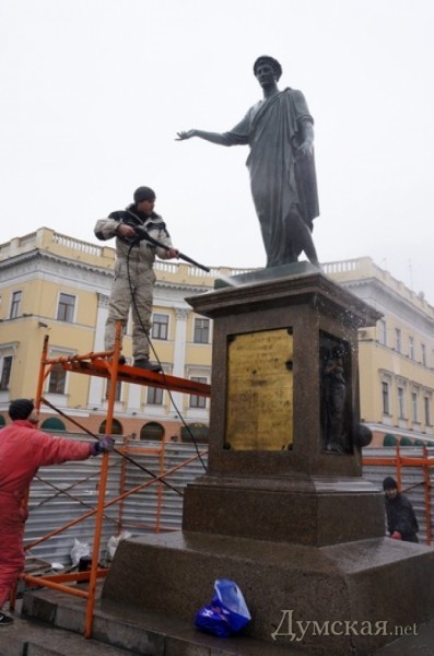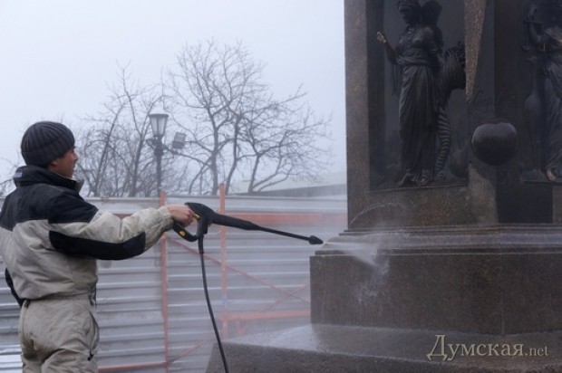 Как сообщила пресс-служба горсовета, в рамках реставрации привели в надлежащий вид ступени подножия памятника, горельефы, украшающие постамент, а также восстановили вокруг памятника аутентичное ограждение из 12 столбиков и небольших цепей. В завершение ремонтно-реставрационных работ коммунальщики помыли постамент и гранитные ступени к памятнику, а также саму скульптуру.