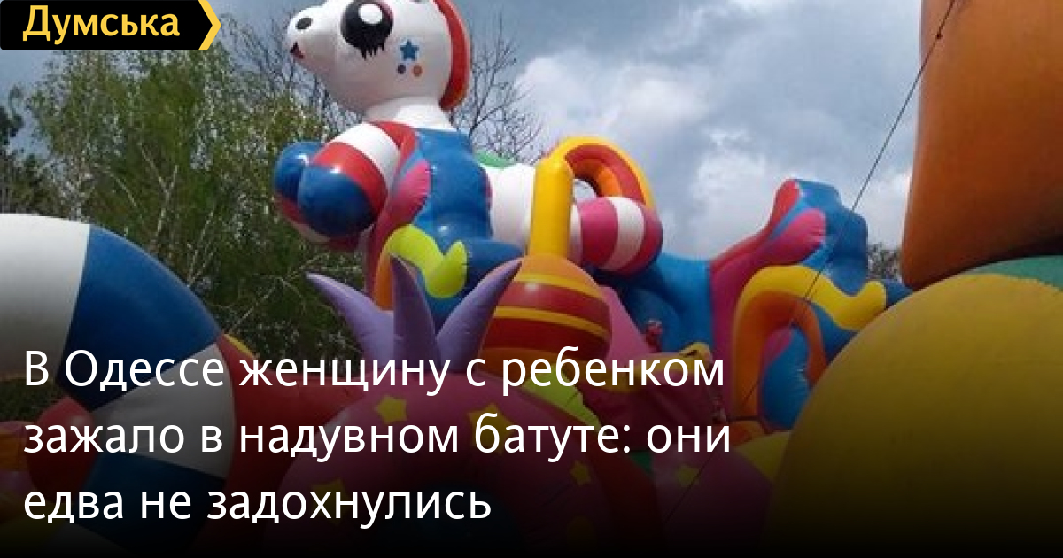 Неприятный инцидент произошел во время пасхального фестиваля в одесском парке Победы — детский надувной батут зажал женщину с ребенком.