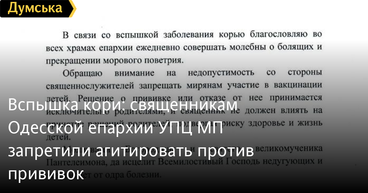 В связи со вспышкой кори во всех храмах Одесской епархии УПЦ Московского патриархата ежедневно совершают молебны «о болящих и прекращении морового поветрия».