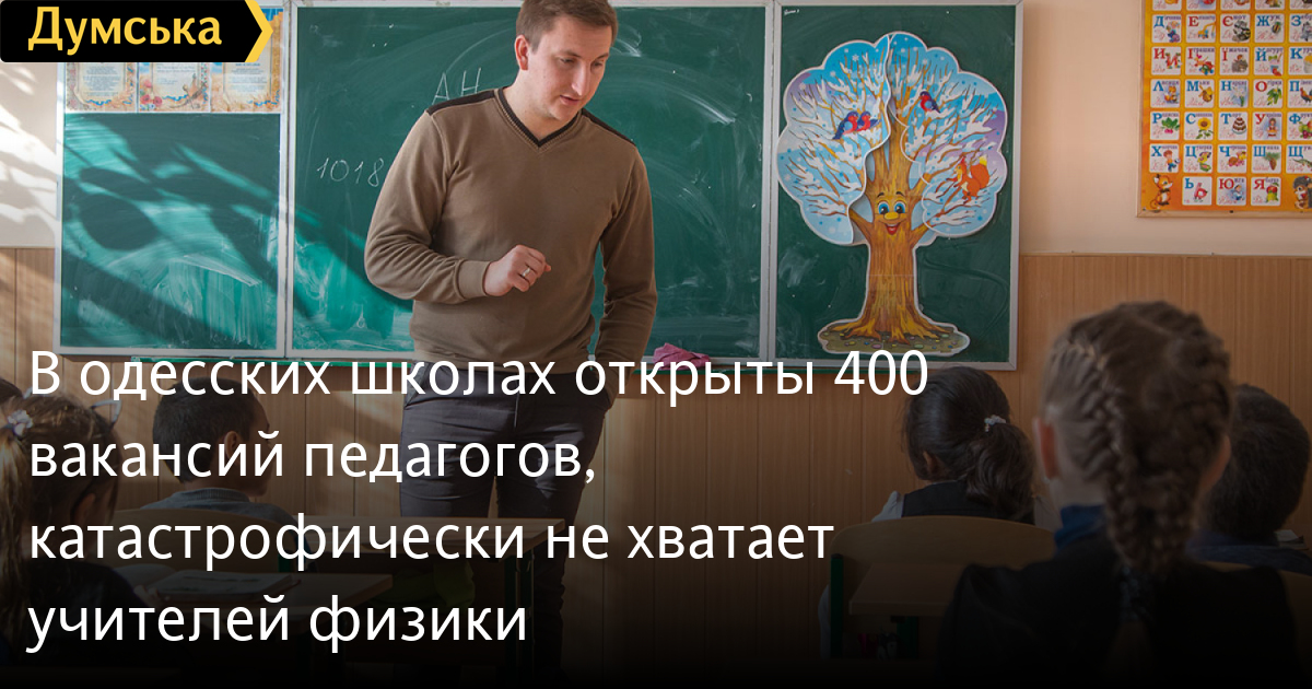 В Одессе не хватает 400 учителей. Самые востребованные — преподаватели естественных наук (физики, химии и биологии) и специалисты по сопровождению инклюзивного образования.