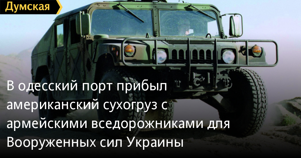 Сухогруз Ocean Glory под американским флагом зашел вчера вечером в одесский порт. По информации «Думской», судно доставило в Украину около 350 тонн военного снаряжения, в частности 35 армейских внедорожников HMMWV.