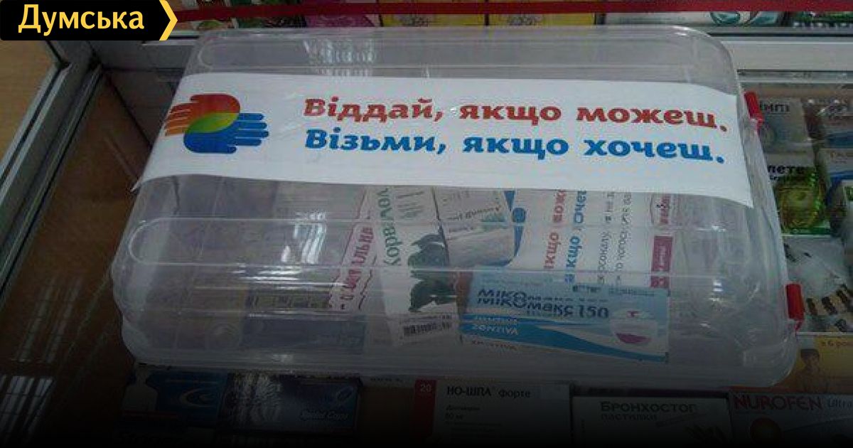 «Отдай — если сможешь, прими — если хочешь!» — гласит надпись на специальной коробке. Посетитель может приобрести любое лекарство и оставить его в аптеке. Другой клиент может взять препарат бесплатно, если он ему нужен.