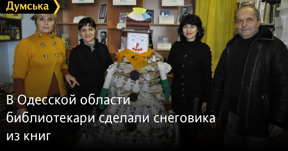 Сотрудники Болградской районной библиотеки сделали снеговика из книг. Большой снеговик стоит у входа в абонентский отдел, пишет «Трасса Е-95». Библиотекари пояснили, что, истосковавшись по снегу, решили сделать его для создания новогоднего настроения. Свое творение они назвали «Прочти меня». Рядом со снеговиком размещается выставка книг, в которых описывается, как праздновали Новый год и Рождество в разные эпохи. Как сообщалось ранее, в Арцизе создали елку из книг. СМЕРТЬ РОССИЙСКИМ ОККУПАНТАМ! Заметили ошибку? Выделяйте слова с ошибкой и нажимайте control-enter |