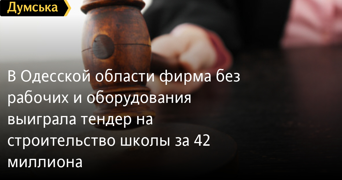 В Одесской области фирма без рабочих и оборудования выиграла тендер на строительство школы за 42 миллионаХозяйственный суд области в полном объеме удовлетворил иск прокуратуры Одесской области к Департаменту капитального строительства Одесской областной государственной администрации и общества с ограниченной ответственностью. Надзорное ведомство требовало в судебном порядке признать недействительными решения комитета по конкурсным торгам и договора о закупке работ по строительству школы на 300 мест в Раздельнянском районе стоимостью почти 42 млн грн. Как сообщили в пресс-службе облпрокуратуры, установлено, что на момент проведения торгов и заключения этого соглашения необходимой суммы в бюджете не было. Кроме того, предприятие-победитель не соответствовало квалификационным критериям, предъявляемым к участникам тендера. Так, на предприятии, кроме директора, других работников не было, а необходимое оборудование отсутствовало. Более того, директор фирмы предоставил недостоверную информацию в комитет конкурсных торгов. Приговором Приморского районного суда Одессы директор предприятия-победителя признан виновным в служебном подлоге (ч. 1 ст. 366 УК Украины). СМЕРТЬ РОССИЙСКИМ ОККУПАНТАМ! Заметили ошибку? Выделяйте слова с ошибкой и нажимайте control-enter |