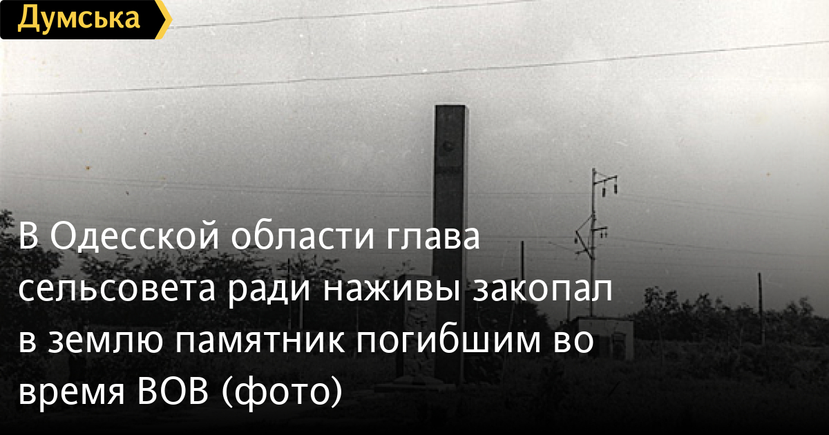 «Председатель сельского совета с. Сухой Лиман Овидиопольского района Стелюк А. И. в погоне за наживой, руководствуясь исключительно своими меркантильными интересами, без согласования с громадой (да и разве могла громада пойти на такой кощунственный шаг?) разрушил памятник воинам-сухолиманцам, установленный в памятном для нас месте, месте откуда наши отцы и деды уходили сражаться с врагом и многие не вернулись, — отмечается в письме. — Под покровом ночи сначала была снята и продана плитка вокруг памятника, а затем, также под покровом ночи был уничтожен и сам обелиск. И все это только ради того, чтобы продать 54 кв.м. земли коммерсантам расположенной рядом фирмы.
