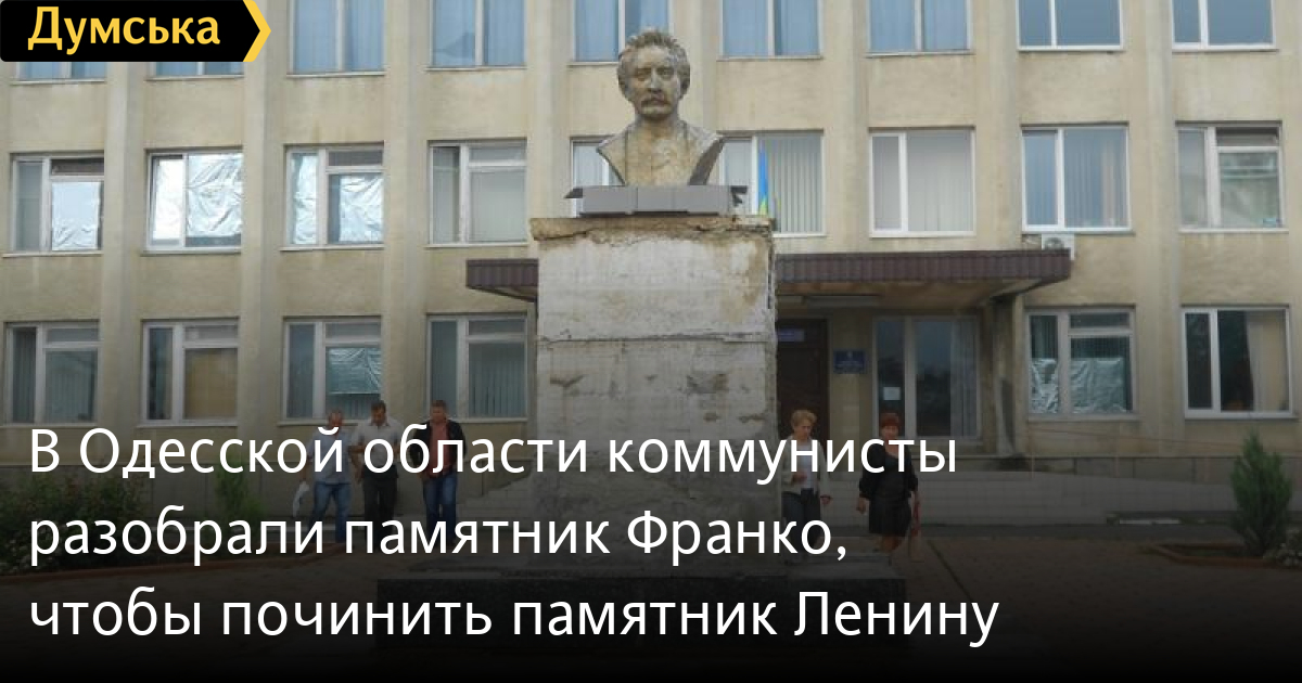 Представители Коммунистической партии Украины частично разобрали постамент, на котором стоит бюст Ивану Франко в поселке Ивановка Одесской области, чтобы обустроить памятник Владимиру Ленину.