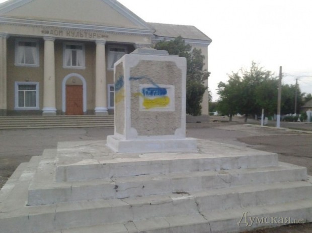 Похожий инцидент произошел в ночь с воскресенья на понедельник в селе Кирнички Измаильского района. Тамошний бюст Ильича вандалы унесли с собой, а постамент разрисовали в цвета государственного флага.