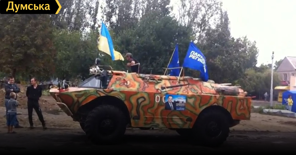 В Татарбунарах Одесской области разъезжала бронированная разведывательно-дозорная машина со знаменами Партии регионов.