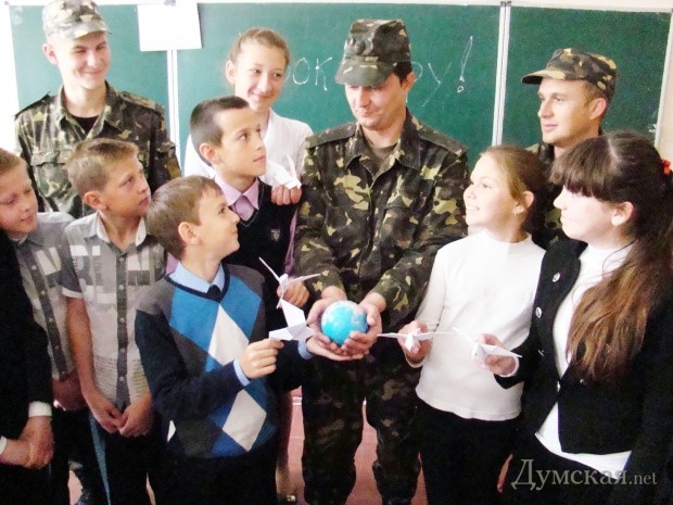Также военнослужащие провели «урок мира» в местной школе. Дети подарили им на память символический земной шар и бумажных голубей.