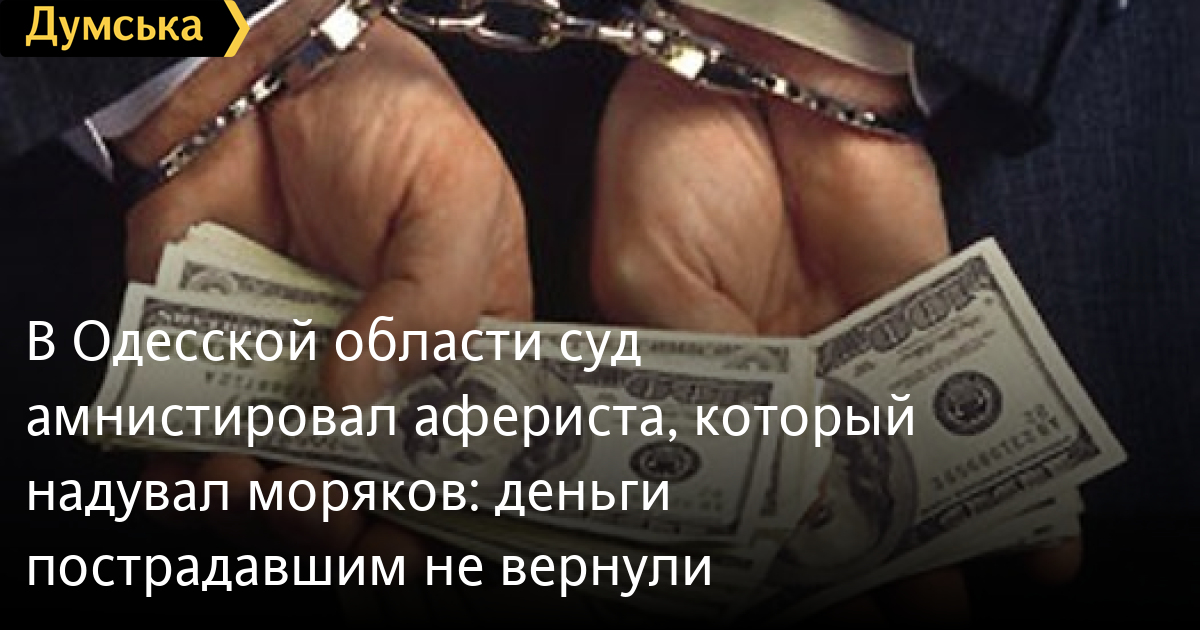 Измаильский горрайонный суд Одесской области амнистировал афериста, который выманивал деньги у моряков в обмен на «липовое» трудоустройство. На удочку мошенника попались девять человек.