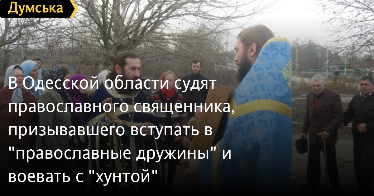Батюшку обвиняют в преступлении, предусмотренном статьей 110 Уголовного Кодекса Украины — «посягательство на территориальную целостность и неприкосновенность Украины». Как утверждает следствие, он с амвона и на страницах храмовой газеты «Откровение» предсказывал скорое «возрождение единой Руси» и призывал прихожан вступать в «православные дружины» для борьбы с «Антихристом в лице киевской хунты». Один из номеров газеты, которая, кстати, печаталась по благословению митрополита Одесского и Измаильского, есть в интернете. Ознакомиться с ним можно тут.