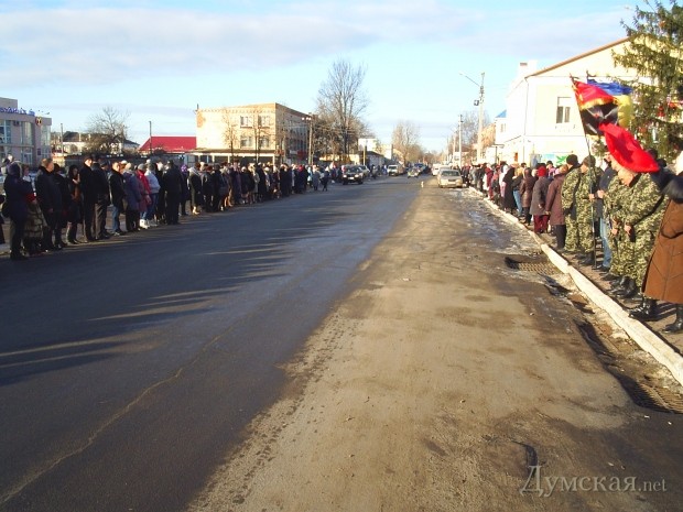 Тысячи жителей Балты вышли сегодня на улицы райцентра, чтобы проводить в последний путь военнослужащего 28-й механизированной бригады, жителя села Белино Балтского района Леонида Кныша, который погиб 8 января у села Оленовка Донецкой области.