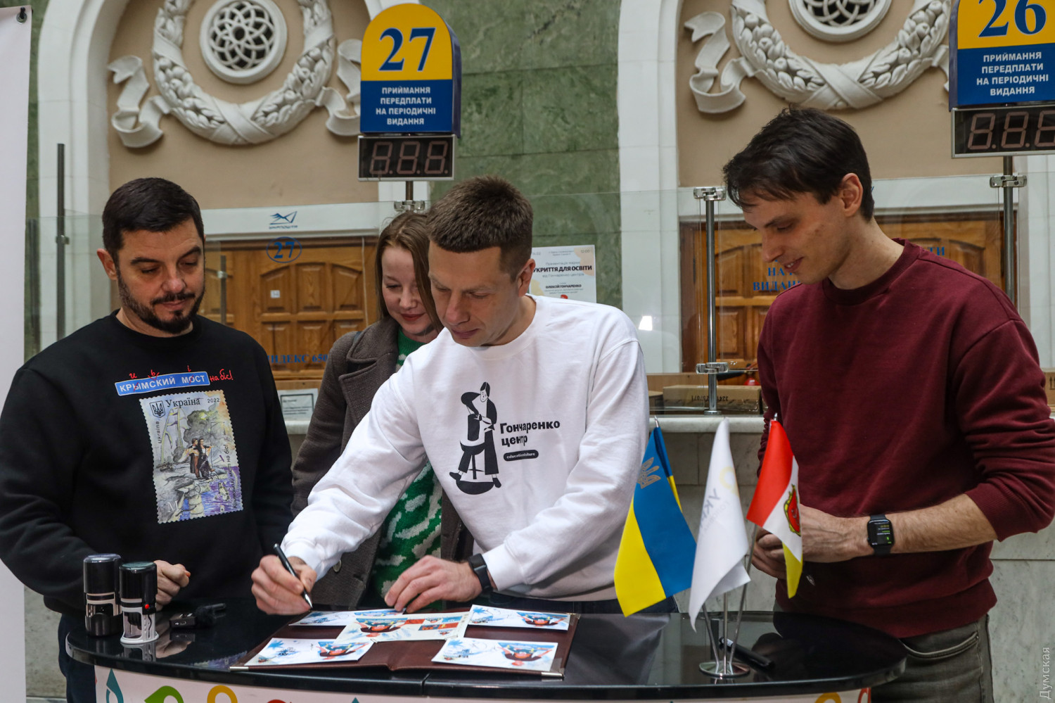 На одеському Головпоштамті урочисто погасили марку на честь дворічної роботи Гончаренко центрів (фото, відео)Поштову марку, присвячену дворіччю роботи освітньої та волонтерської мережі Гончаренко центрів, урочисто погасили сьогодні в стінах одеського Головпоштамту. Учасниками презентації стали засновник мережі, народний депутат Олексій Гончаренко, директор Одеської дирекції «Укрпошти» Сергій Дрозд, одеські волонтери. «Перший наш центр ми відкрили в Одеській області, у Подільську, понад два роки тому, — розповів Олексій Гончаренко. — А вже після початку повномасштабного вторгнення в Одесі, на площі Дерев'янка, запрацював перший волонтерський центр, зусилля якого спрямовані на гуманітарну допомогу і підтримку Збройних сил України. За минулий рік понад 100 тисяч людей відвідали наші центри, п'ять тисяч осіб закінчили різні курси. І ми стали справжніми прихистками для освіти та культури. Саме тому, як ми захищаємо дитинство наших дітей, і присвячена ця марка». Макет марки, що отримала назву Shelter for Education («Прихисток для освіти»), розробила одеська художниця і дизайнерка Дар'я Філіппова. «Це образ усіх нас, дорослих українців: військовослужбовців, волонтерів, лікарів, вчителів, кожного, хто сьогодні захищає дітей, які продовжують навчатися, незважаючи на обстріли та відключення світла», — каже художниця. Кошти, зібрані від продажу марок, йдуть на підтримку Збройних сил України. Зазначимо, зараз в Україні працює 21 Гончаренко центр — від Львівської області до Херсона. Найближчим часом нову філію відкриють у Харкові. СМЕРТЬ РОСІЙСЬКИМ ОКУПАНТАМ! Помітили помилку? Виділяйте слова з помилкою та натискайте control-enter |