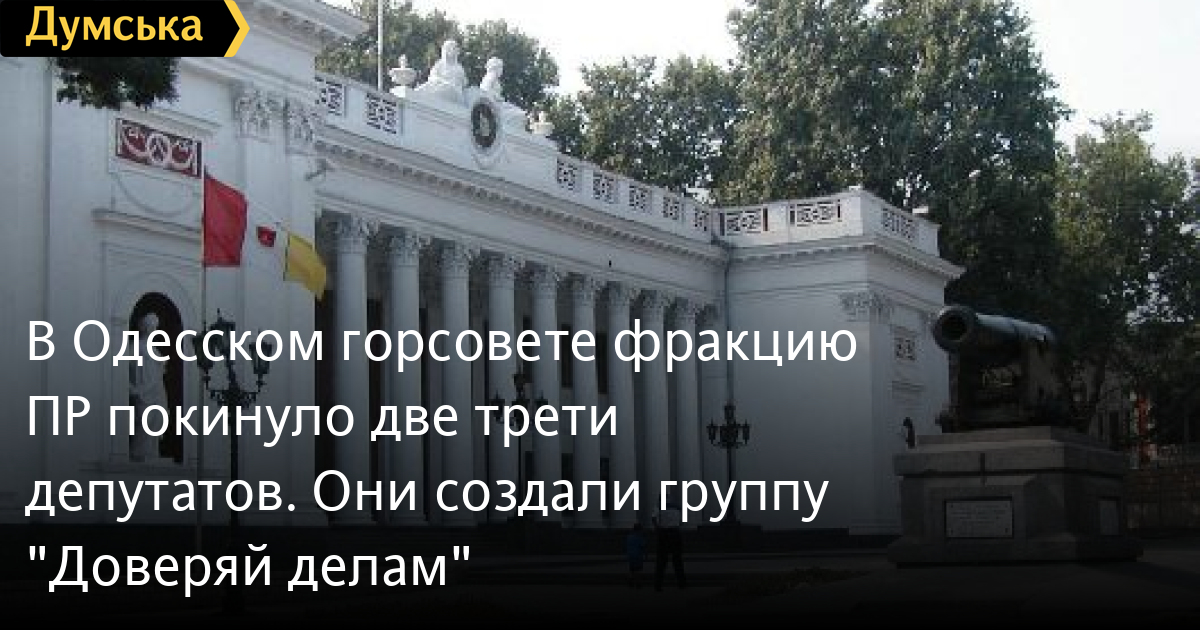 Все ушедшие из ПР депутаты вошли в новую группу, названную в честь предвыборного лозунга мэра Труханова «Доверяй делам». Всего в ней 38 членов. Возглавил группу экс-сильноукраинец Анатолий Балинов.