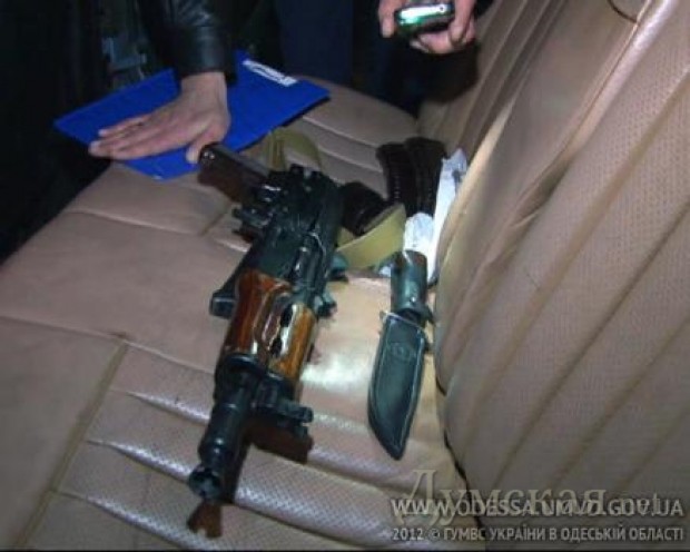 Подозреваемых нашли довольно быстро. Экипажи ДПС ГАИ и патрульной службы милиции начали преследование автомобиля «Мерседес», в салоне которого находились вооруженные граждане. На улице Среднефонтанской, в межквартальном проезде, правоохранителям удалось заблокировать авто и задержать двоих мужчин. У них изъяли гражданский вариант автомата АКСУ «Вулкан-ТК» (в отличие от военной версии, из него нельзя стрелять очередями) с тремя снаряженными магазинами и охотничий нож.