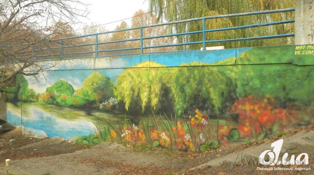 Главный мост одесского парка Победы украсили зеленым пейзажем. Картина появилась прямо на бетонной конструкции, поддерживающей мост. Нарисованные деревья и пруд гармонично вписываются в пейзаж самого парка. Пока мост украшен только с одной стороны. Заметили ошибку? Выделяйте слова с ошибкой и нажимайте control-enter |