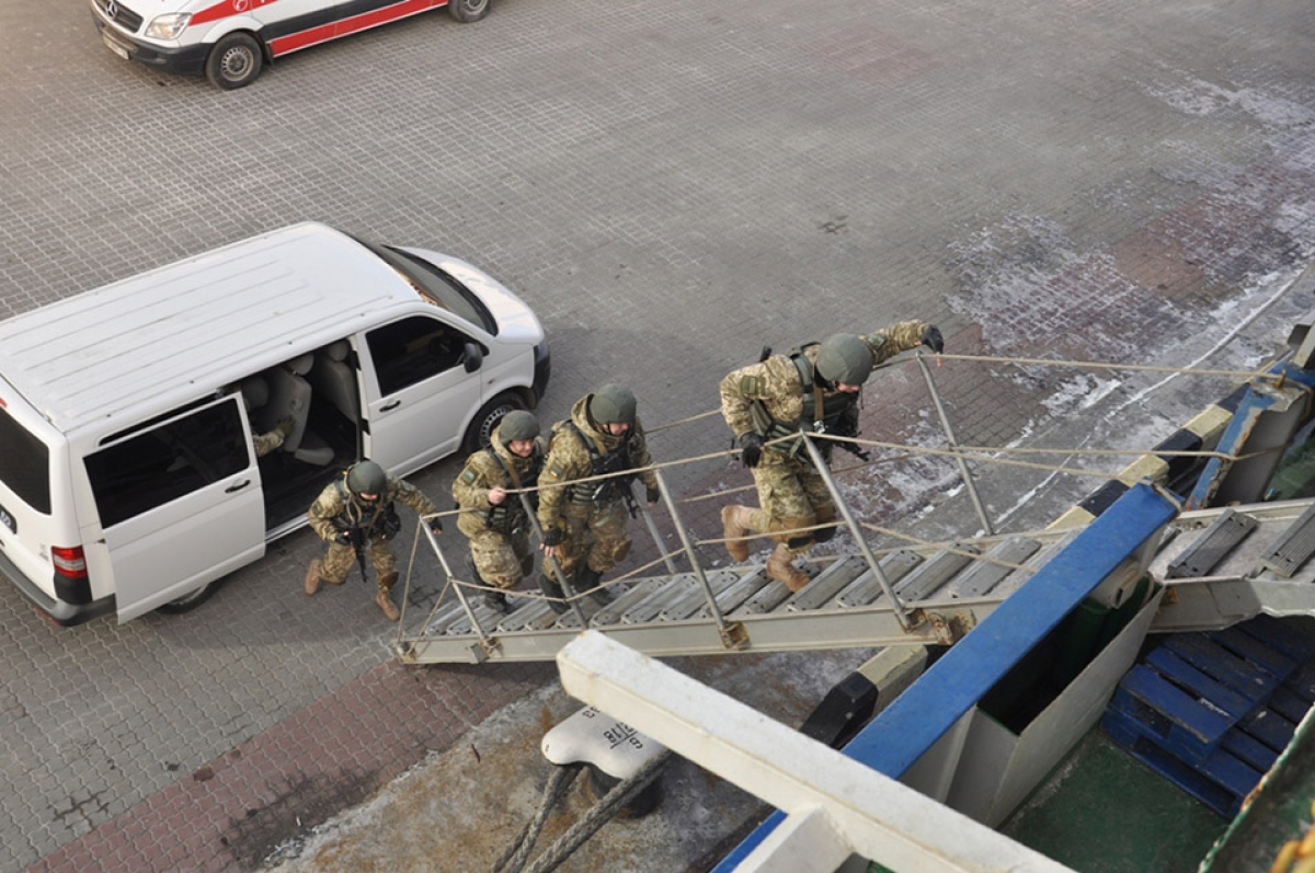 «Действия группы реагирования были четкими и стремительными. Считанные минуты понадобились пограничникам, чтобы преодолеть открытое пространство перед судном, подняться по трапу на борт и обезвредить «злоумышленников», — сообщает пресс-служба порта.