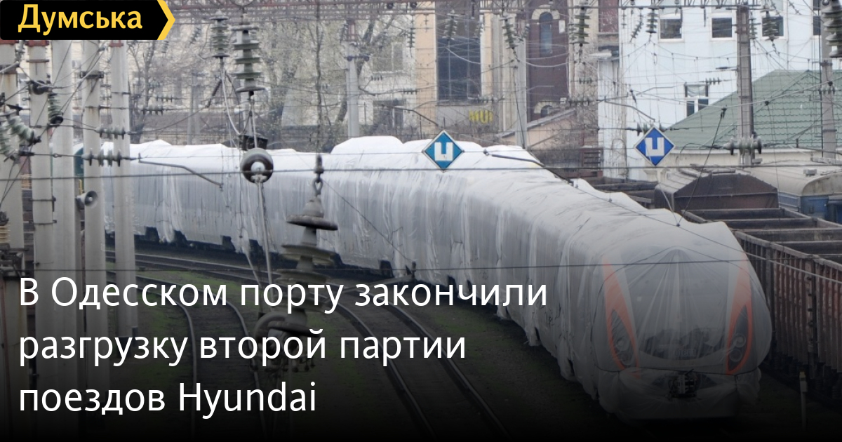 Последний – девятый — вагон четвертого скоростного электропоезда корейской компании Hyundai Rotem сегодня ночью выгружен с судна и установлен на рельсы в Одесском морском торговом порту (ОМТП).