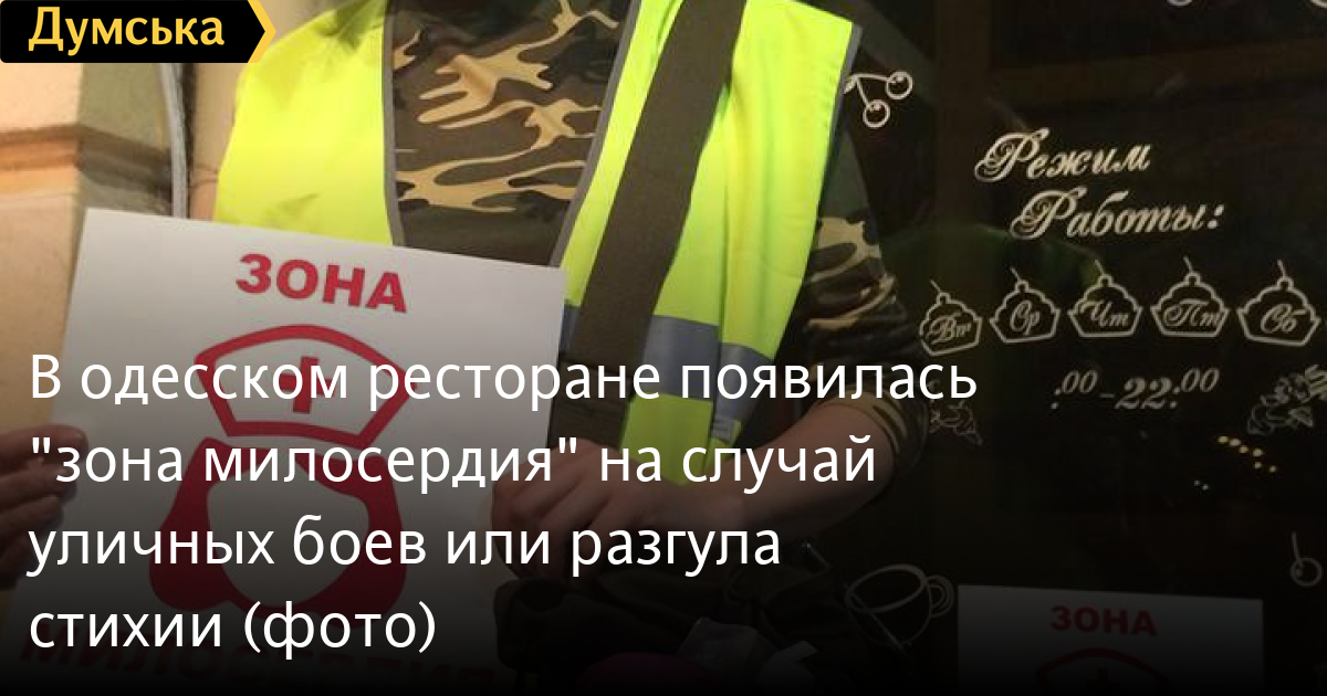 Одесские рестораторы Ирина и Юлия Ангеловы разместили в своем заведении «Зону милосердия», где будут оказывать первую медицинскую помощь в случае новых беспорядков в городе, если такие, не дай бог, снова произойдут.