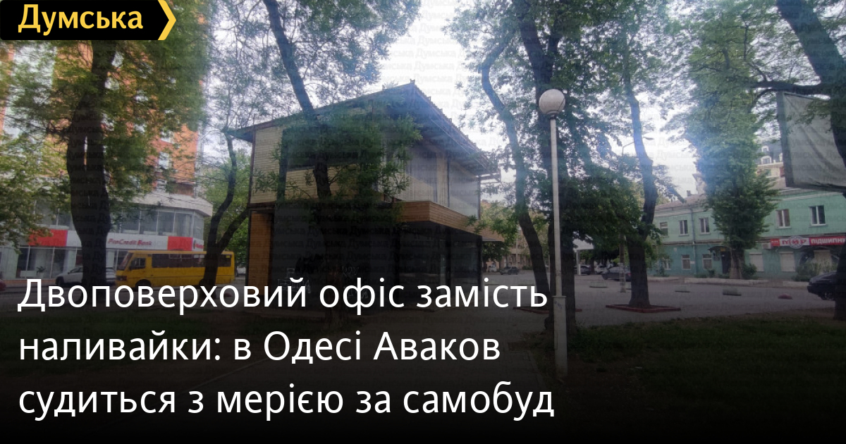 Двоповерховий «офіс» замість наливайки: в Одесі Аваков судиться з мерією за самобудСудові баталії за двоповерхову будівлю в Серединному сквері тривають в Одесі. Як передає кореспондент «Думської», мерія намагатиметься визнати її незаконною, а її власники — відчайдушно чинять опір. Роман Борисович Аваков і Станіслав Федорович Розуменко проходять відповідачами в цілій низці справ, пов'язаних із цією будівлею. Якщо коротко — у 2017-му в Серединному сквері замість звичної вже наливайки почали зводити цілком капітальну будову. Сьогодні це вже двоповерховий об'єкт, збудований доволі добротно. При цьому все вказує на те, що приміщення стоїть порожнє, хоч і поставлене на сигналізацію. Другий поверх має вигляд радше літнього майданчика. Можливо, спочатку там планували робити кафе.